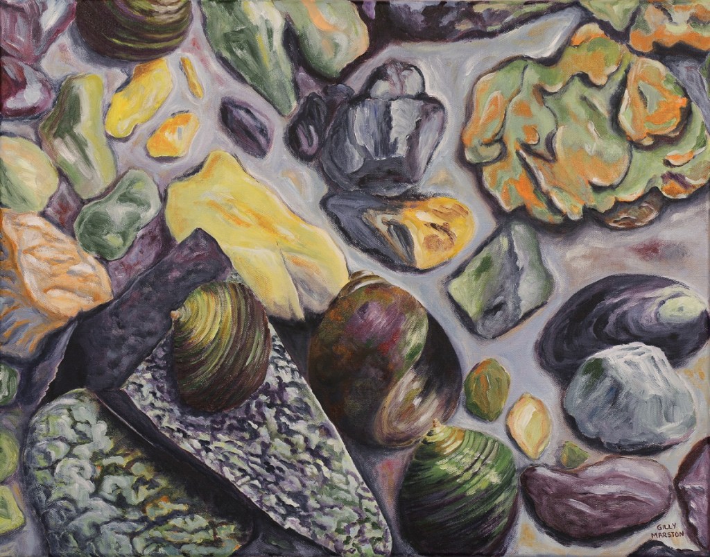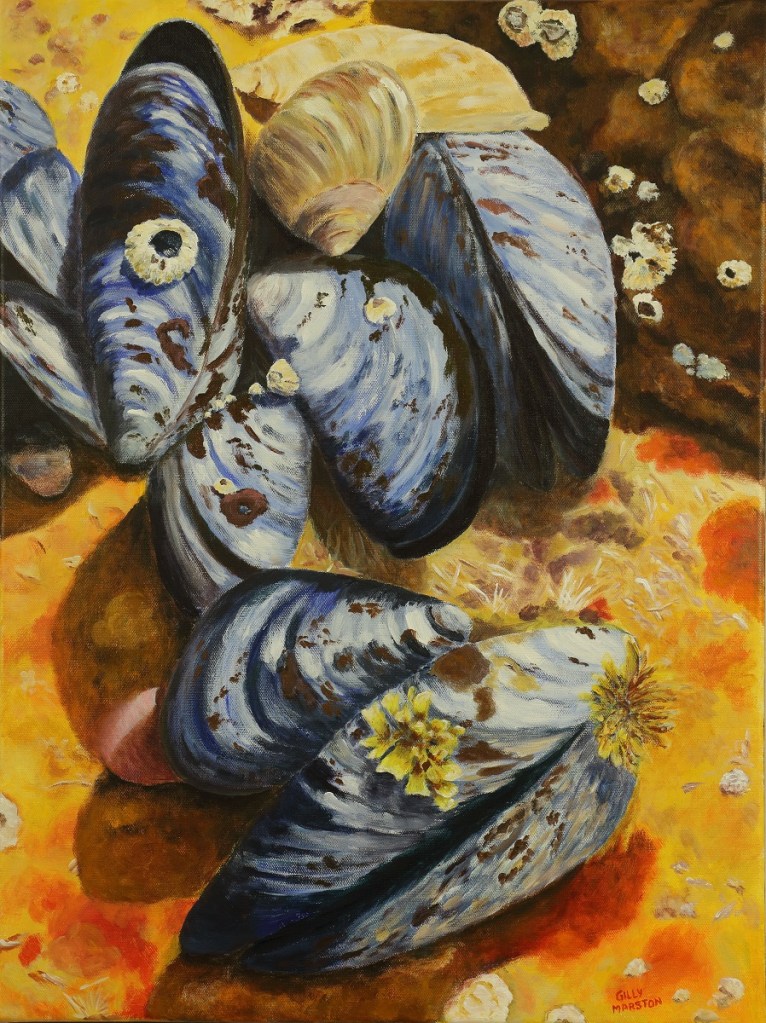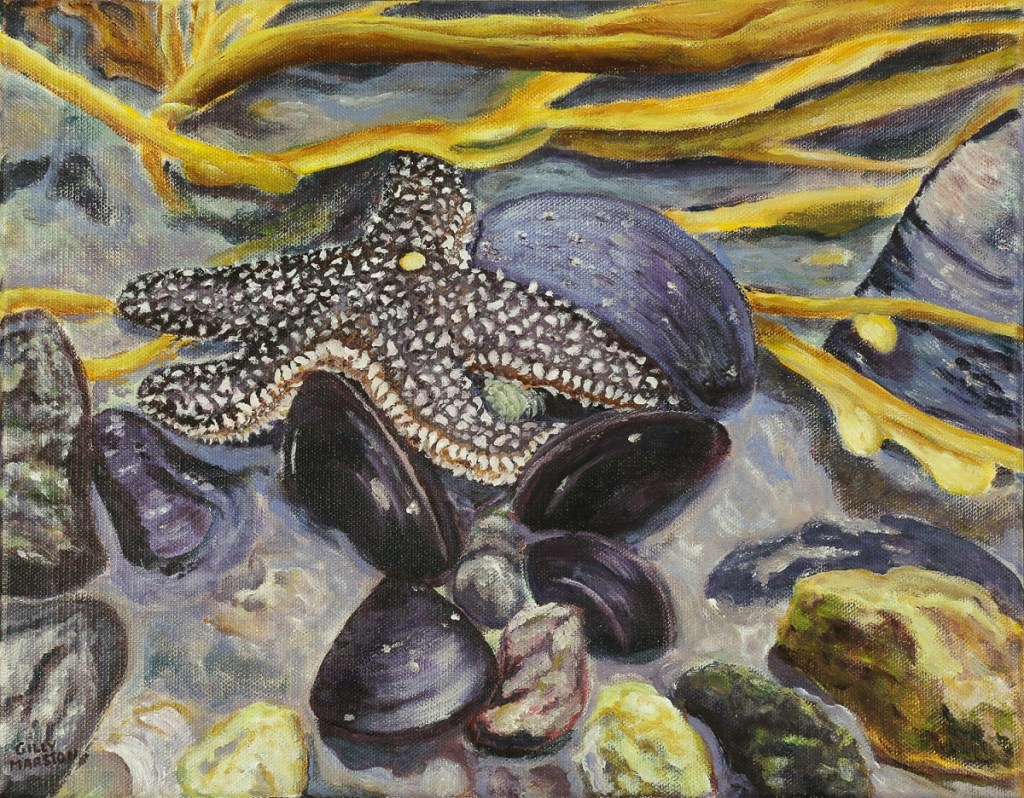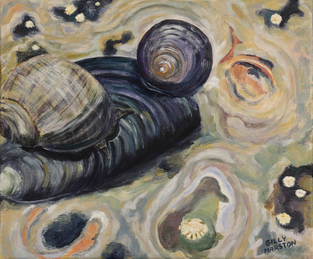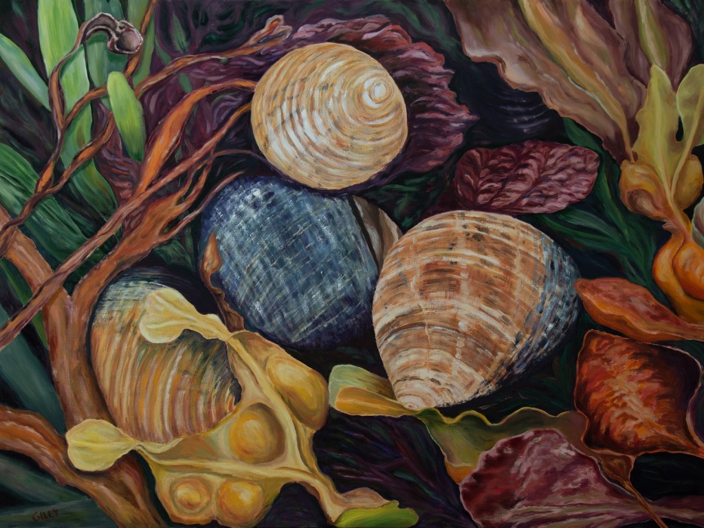 The highly distinctive series, ‘Tide’s Out’, focuses on a close-up view of seashore life. The signature piece in the Tide’s Out series is titled ‘Remembering Rachel’. ‘Remembering Rachel’ is a tribute to Rachel Carson who loved the creatures living at ‘The Edge of the Sea’ and was also a hero of the environment many years ago. https://www.rachelcarson.org